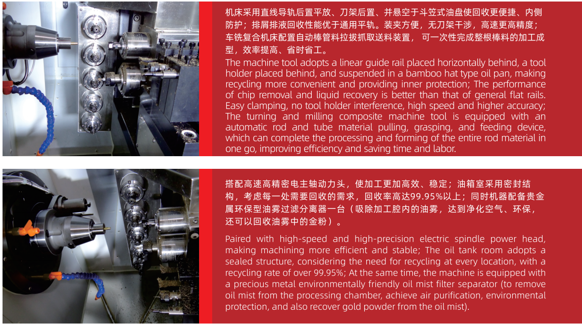 除具備數(shù)控車床上的功能還可以完成平面銑 削、鉆孔、攻絲、直槽、螺旋槽及銑齒等, 具有車削、銑削以及鏜削等復(fù)合功能,能夠 實(shí)現(xiàn)一次裝夾、全部完工的加工理念。滿足 大批量生產(chǎn);操作簡(jiǎn)單方便。